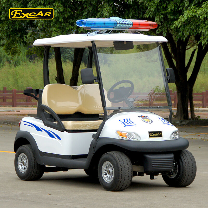EXCAR হোয়াইট ২ সিট ইলেকট্রিক পেট্রোল কার 48V ট্রোজান ইলেকট্রিক প্রাউল কার অ্যালার্ম ল্যাম্প সহ